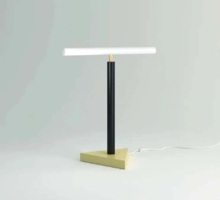 Découvrez Tube with triangle, la lampe de table imaginée par Gwendolyn et Guillane Kerschbaumer pour la maison d’édition Allemande Atelier Areti.