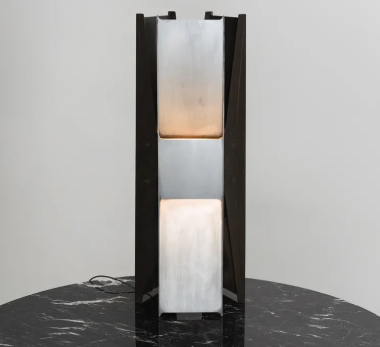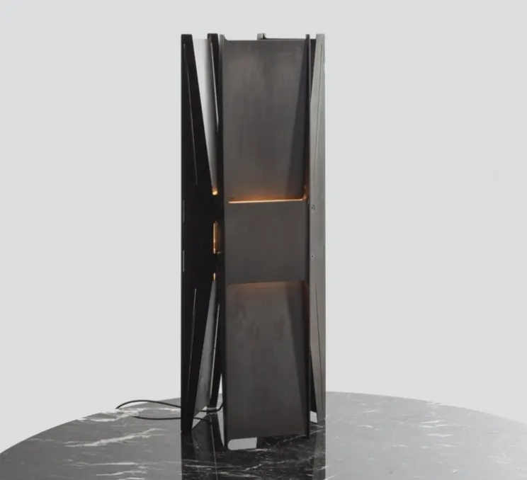 Inspirée par le mouvement brutaliste, la lampe à poser Vector révèle de légères ouvertures jouant ainsi avec les vides et les volumes. Son design rectiligne et vertical renforce sa beauté statuaire. La lumière se diffuse sur les surfaces intérieures et extérieures de manière bidirectionnelle.