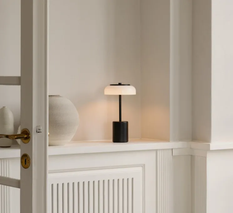 La marque Nuura présente la lampe baladeuse Blossi Portable Mini, une création moderne et élégante signée par la designer Sofie Refer.