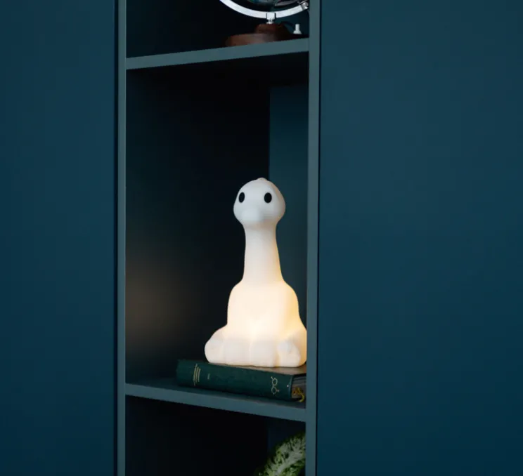 Avec sa forme de tricératops en silicone blanc, cette lampe baladeuse s’intègre idéalement dans une chambre d’enfant. Ses lignes arrondies et son design apaisant en font une veilleuse parfaite, créant une ambiance chaleureuse et réconfortante. La Nova Diplodocus peut être combinée avec d’autres modèles de la collection Dino pour composer une famille de dinosaures et créer tout un univers.