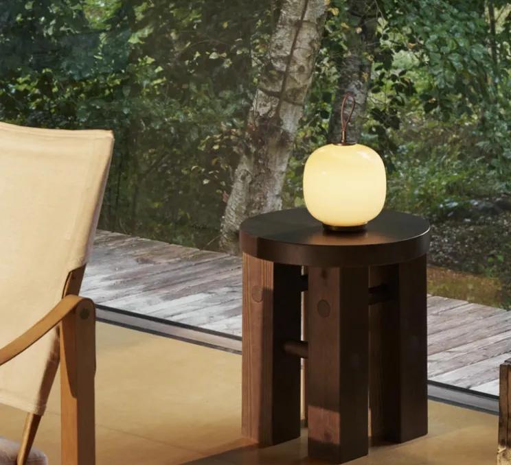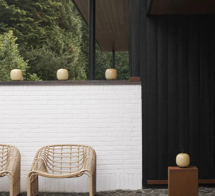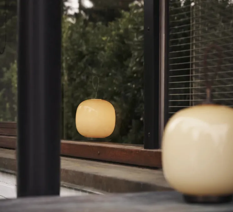 Lampe, Baladeuse, VL 45 Radiohus, laiton noir, verre brillant jaune pâle, IP44, LED, dim, 2000-2700K, lm, Ø17,5cm, H27,5cm – Louis Poulsen