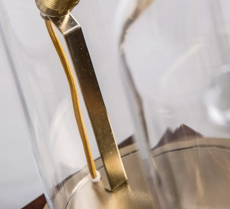 Une lumianire transparent habillé d’une base en finition laiton de style scandinave. La lampe apporte une touche bohème chic et de la fraicheur dans votre salon, chambre, bibiothèque… Cette lampe qui nous rappelle une cloche magnifie l’ampoule et diffuse une lumière douce et chaleureuse.
