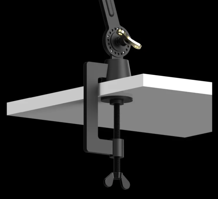 Découvrez la lampe à pince de bureau de la collection Bolt, finition noir fumé, imaginée par Anton de Groof pour la maison Tonone !