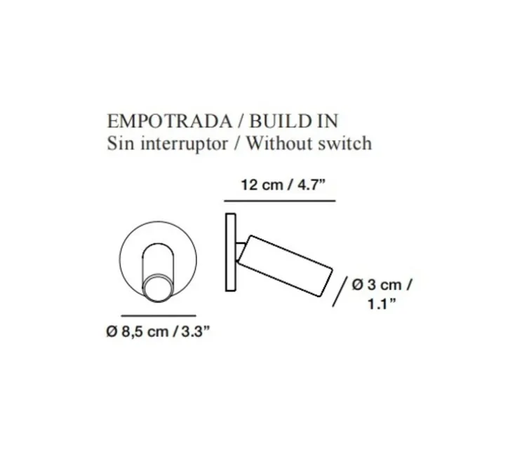 La source lumineuse (module LED intégré, 2w max, 3000k, 100lm) est incluse. Le luminaire ne possède pas d’interrupteur.