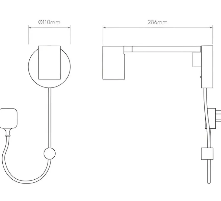 La liseuse Ascoli Swing mesure 11 cm de hauteur, 11 cm de longueur et 28,6 cm de profondeur. L’ampoule LED GU10 d’une puissance maximale de 6W n’est pas fournie mais est recommandée pour le bon fonctionnement du luminaire. Possède un interrupteur sur la base et un câble de 2,5m. Montage mural.