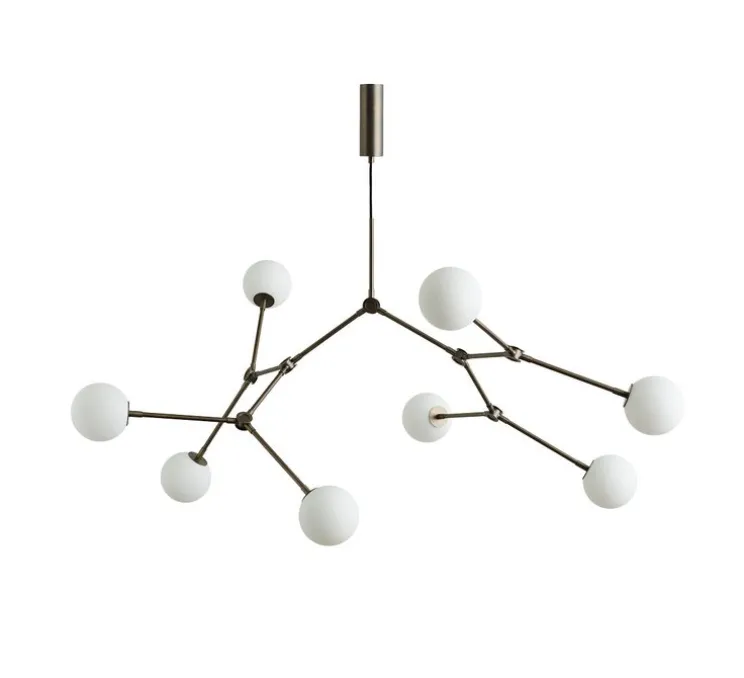 Inspiré du modernisme danois et des icônes intemporelles… Ce lustre au style contemporain conserve le charme des années 50. Très élégant et graphiquement épuré ce lustre assure une diffusion de la lumière très agréable et optimale grâce à ses bulles en verre opalin. Les abat-jours en forme de bulle épousent parfaitement les branches articulées pour un éclairage naturel et agréable. Un luminaire parfait pour créer une ambiance chaleureuse dans tous les intérieurs.
