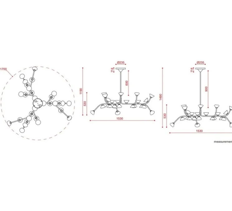 Techniquement, ce modèle propose un éclairage LED direct et indirect. Le lustre est dimmable en coupure de phase et offre une luminosité de 10 500 lumens avec une température de couleur de 2700K. Il a un diamètre de 170 cm et une hauteur de 53 cm. Le Linfa 565.13 est une pièce de design exceptionnel conçue en Italie, offrant un parfait équilibre entre forme et fonction. Tige télescopique allant de 60 à 90 cm. Possède un IP40 protégeant le luminaire contre les corps solides de taille supérieure à 1 mm. Montage en saillie au plafond.