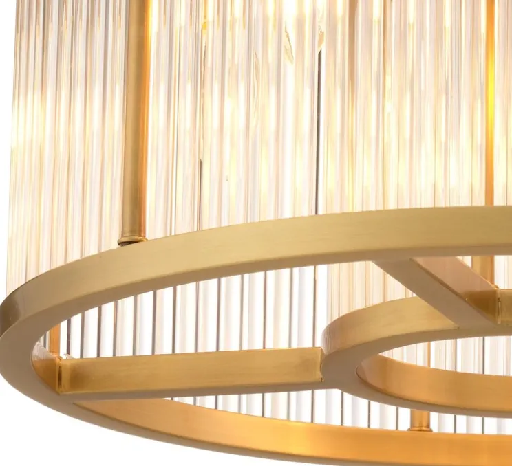 Avec son abat-jour cylindrique composé de tiges de verre étincelantes, le plafonnier Bernardi S diffuse une lumière à 360°, créant une ambiance chaleureuse et harmonieuse. Son contraste entre le verre et le métal laiton lui permet de s’intégrer aussi bien dans un décor classique que contemporain. Il s’installe avec aisance dans un salon, une salle à manger ou un hall d’entrée pour une mise en valeur subtile et lumineuse.