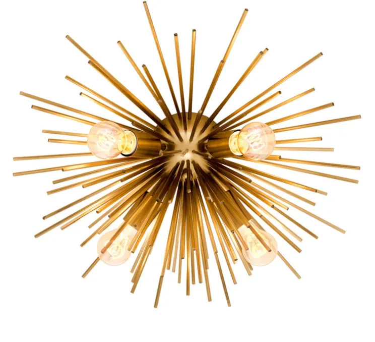 Avec sa finition en or mat et ses tiges rayonnantes en laiton, le plafonnier Boivin capte et reflète la lumière de façon harmonieuse. Inspiré par la forme d’une étoile, il crée un effet visuel captivant tout en apportant chaleur et éclat à la pièce. Ce plafonnier décoratif s’intègre parfaitement dans un salon, une chambre ou un couloir, devenant une pièce maîtresse de votre décoration intérieure.