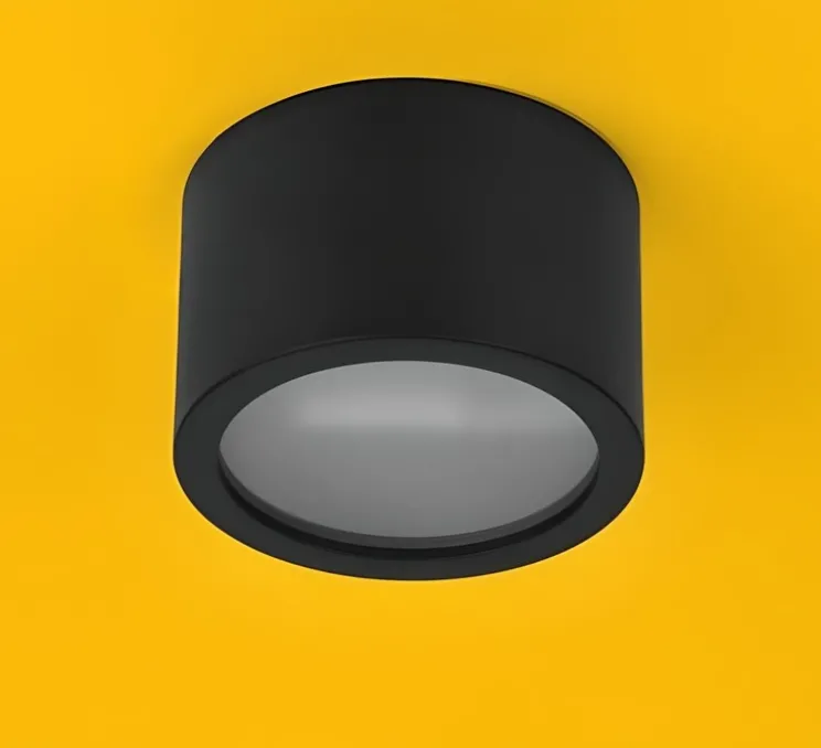 Son design cylindrique compact (Ø10 cm, hauteur 6,7 cm) en aluminium noir s’intègre aisément dans des intérieurs contemporains, industriels ou minimalistes. Grâce à son indice de protection IP54, il trouve également sa place dans des zones exposées à l’humidité comme une salle de bain ou un espace de circulation. Utilisé seul ou en série, il apporte une discrète précision graphique au plafond.