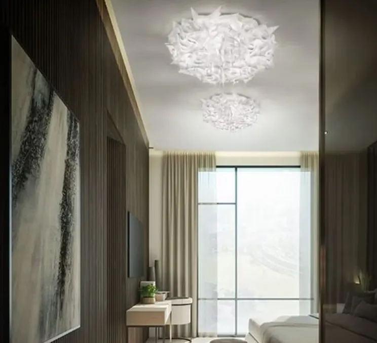 Très original, ce luminaire conçu artisanalement en finition blanc opal se compose d’un design très raffiné en opalflex avec une finition inédite inspirée des textiles texturés contemporains.
