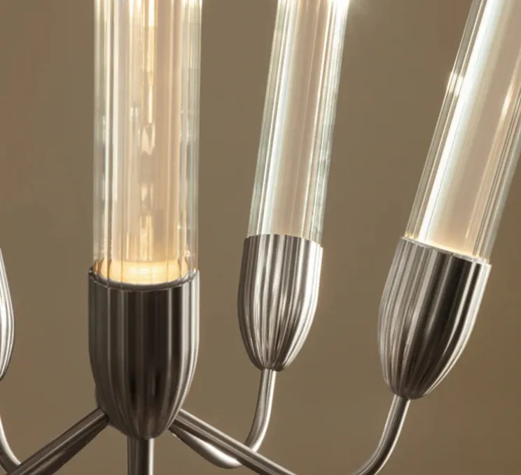 Le Lemon Squeeze Penta Long séduit par ses lignes épurées et son design tubulaire sophistiqué. Le verre opalin, avec sa texture ondulée, capte la lumière de manière fluide et diffuse une lueur douce, tandis que les détails métalliques en acier poli ajoutent une touche de luxe discret. Ce plafonnier est l’élément idéal pour illuminer une salle à manger, un salon ou un hall d’entrée. Son design sculptural permet de l’intégrer parfaitement dans des ambiances modernes tout en offrant une lumière chaleureuse et accueillante.