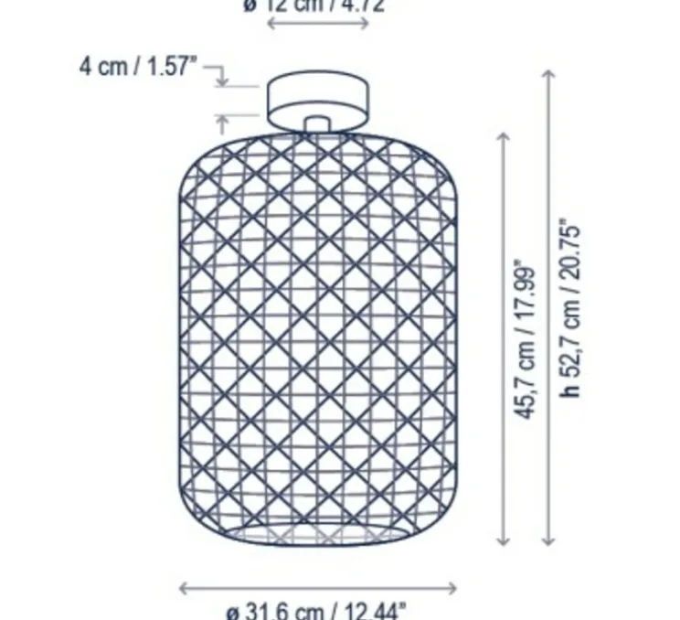 Le plafonnier mesure 31,6 cm de diamètre et 52,7 cm de hauteur. La source lumineuse est de 2700K, 1450lm, 9,5W.