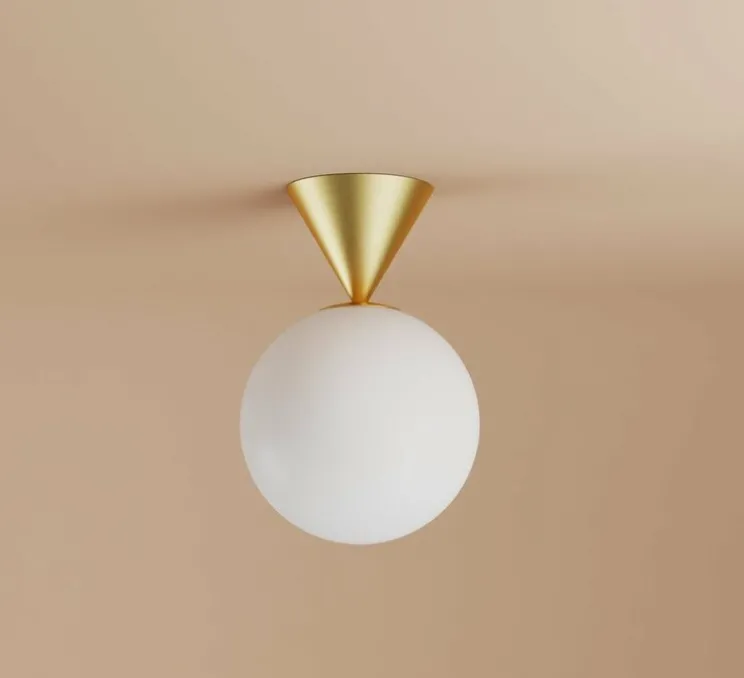Ce plafonnier va au-delà de sa fonction première d’éclairage en tant qu’élément décoratif captivant. Son éclairage diffus crée une atmosphère douce et enveloppante, transformant votre espace en un havre de paix. L’équilibre entre la base conique et la sphère en verre ajoute une esthétique épurée et moderne, parfaite pour les intérieurs contemporains.