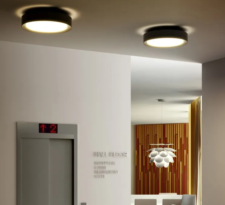 Le plafonnier Plaff-On de Joan Gaspar édité par Marset trouve parfaitement sa place dans une pièce au plafond bas, une entrée ou un hall.