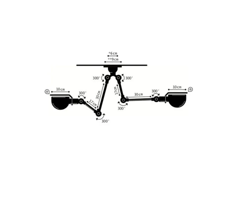 Ce plafonnier est disponible en différentes couleurs. Chaque bras est composé de tiges mesurant respectivement 30cm et 17cm.