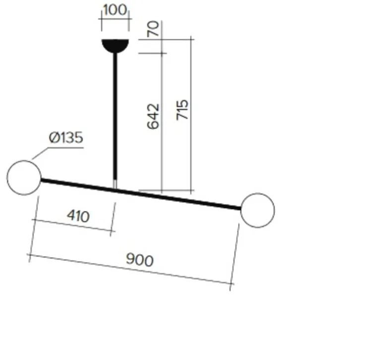 Cette suspension simple et légère, joue avec des éléments géométriques, comme la ligne et la sphère. Son bras légèrement incliné, asymétrique et horizontal, dévoile deux sphères en verre opalin. Sa structure en métal a une hauteur de 71cm et une longueur de 90cm. L’élégante suspension Two Spheres est idéale dans un salon ou salle à manger ou tout autre pièce de votre intérieur.