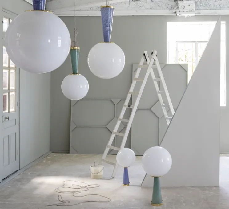 À l’endroit ou à l’envers, ces volumes géométriques l’amènent à jouer de son imaginaire pour faire de cette compilation de pièces des formes abstraites ou figuratives. Ces suspensions de verre aux formats géométriques, aux tailles et matériaux hors normes, révèlent alors une toute nouvelle interprétation des formes.