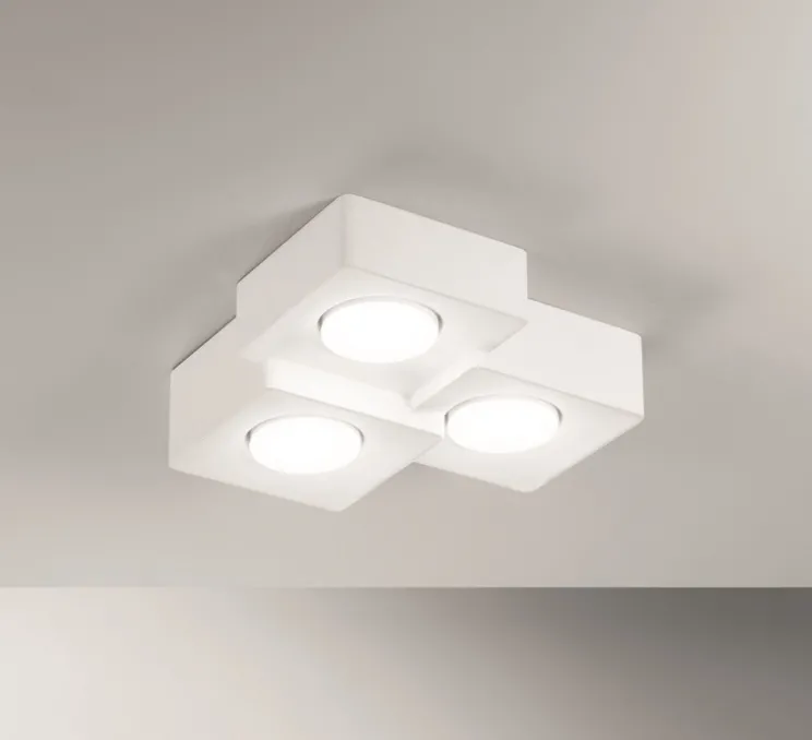 Éclairez et personnalisez vos intérieurs avec le plafonnier en plâtre blanc Bérénice Triple graphique et prêt à peindre du studio Nedgis !