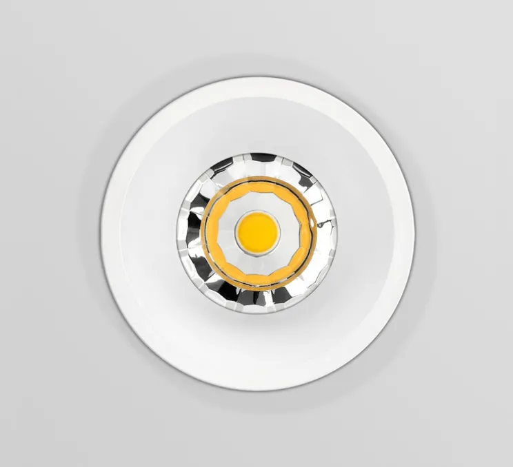 Le spot Kono 1 dispose d’un corps en aluminium de couleur blanc satiné et d’un diffuseur blanc givré. Il est conçu avec un module LED d’une puissance de 10,3w max, dégageant un flux lumineux de 1000 lumens et une colorimétrie de 3000K.