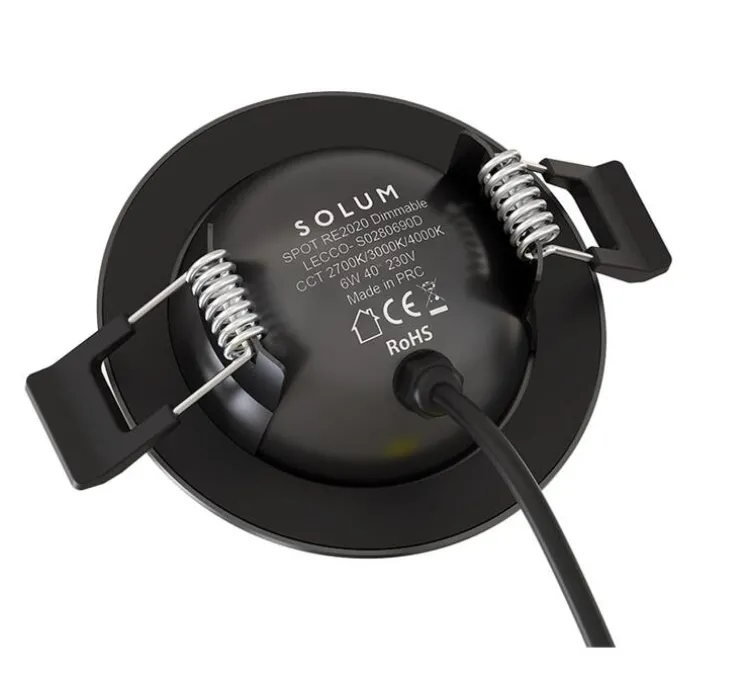 Le diamètre d’encastrement standard est de 65 à 70 mm, et l’alimentation est déportée avec un câble de 30 cm. Conforme aux normes RE 2020, CE, ROHS, et EN 60598, ce spot est également étanche à l’air et compatible avec les isolants déroulés et soufflés.