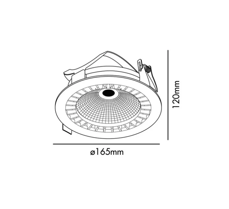 Le diamètre du spot est de 16,5 cm. Avec une température de couleur de 3000K, cet encastrable permet de créer des ambiances chaudes et confortables. La version de 56° d’ouverture est parfaite pour éclairer les restaurants et les hôtels, mais également les salles d’exposition ou les musées…
