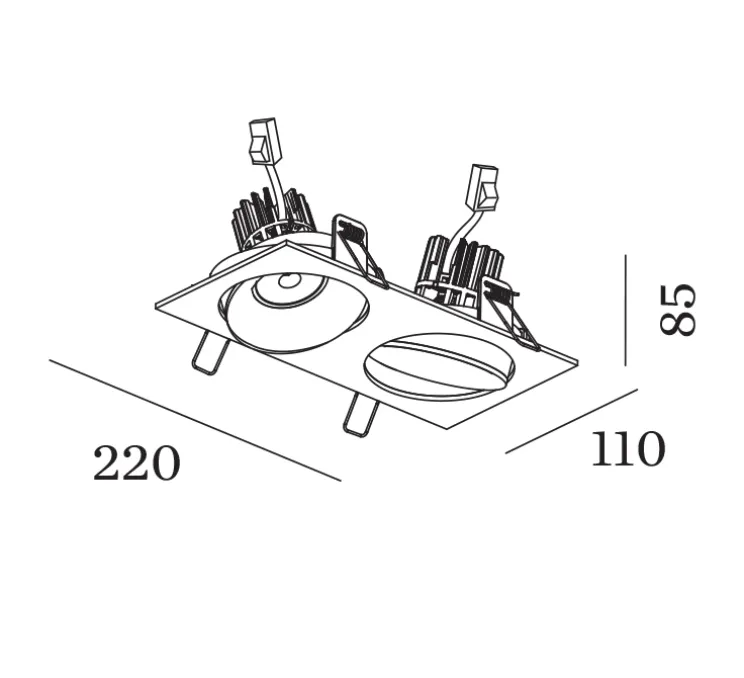 Le luminaire Ron est un spot encastré de forme rectangulaire avec deux sources lumineuses pivotables. Sobre et discret, Ron se place aussi bien dans une cuisine, que dans un couloir ou une entrée.
