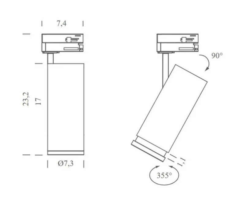 Ce spot cylindrique en finition noir mat est conçu pour être flexible, équipé d’une tête orientable à 90° verticalement et pivotant à 355° horizontalement, permettant un réglage précis du faisceau lumineux en tous sens.