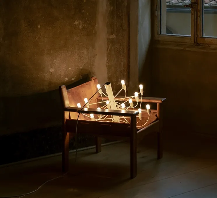 2097/18 est une suspension à lumière diffuse composée d’une structure centrale en forme de tube, de laquelle partent 18 bras en acier, chacun accueillant une ampoule. 2097 a la silhouette d’un chandelier classique et une allure moderne. Raffiné et iconique, 2097 s’intègre dans tous les intérieurs, qu’ils soient privés ou publics, classiques ou modernes, que la suspension soit utilisée dans un salon, au-dessus d’une table ou dans une entrée.