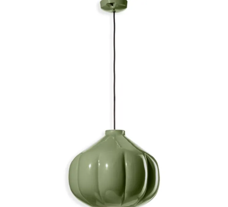 Délicate et arrondie, voici la suspension Afoxé grande verte kaki designée par Giorgio Biscaro pour Ferroluce.