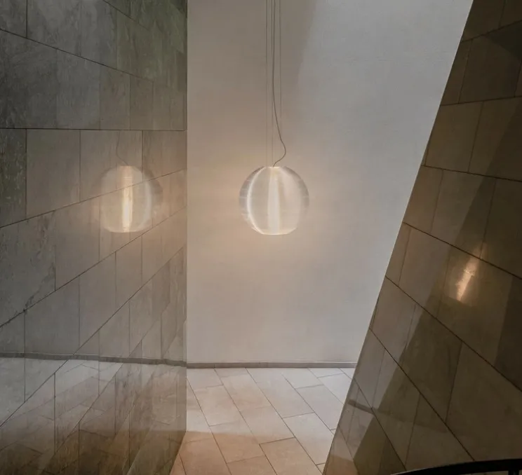 Ainsi, la suspension Aire 450 apporte une touche de modernité à tout intérieur. Sa transparence lui permet de se fondre harmonieusement dans différents styles de décoration, ajoutant une touche de légèreté et de sophistication à l’espace. Conseil déco : suspendez-la au-dessus d’une table à manger ou dans un salon pour créer un point focal captivant et éclairer la pièce de manière uniforme.