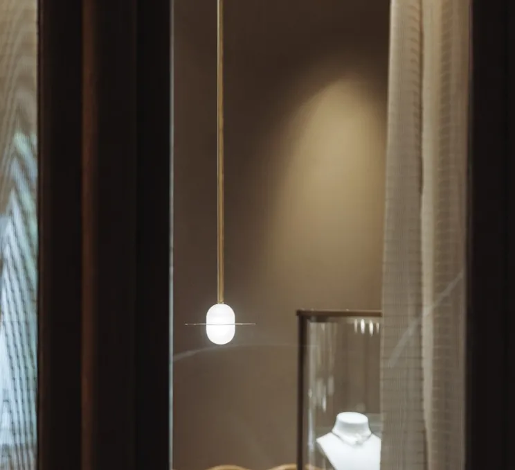 Suspension, Alba, laiton vieilli, verre givré, Ø15cm, H96cm – Contain