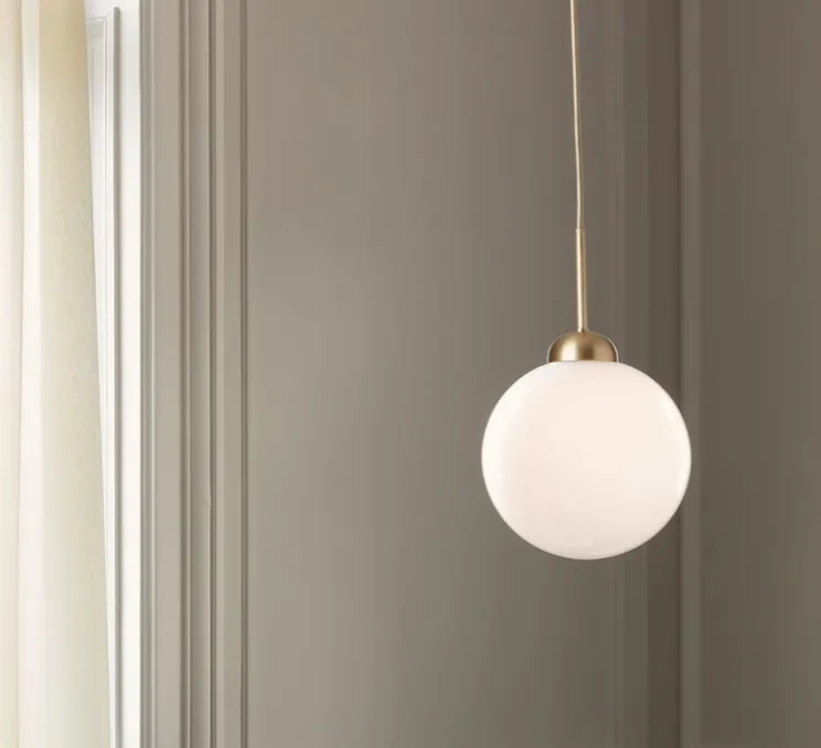 La suspension Apiales diffuse une lumière douce, chaleureuse et très éclairante, elle trouve aisément sa place dans une salle à manger, un hall ou une chambre et est conçu en finition laiton doré. Son globe soufflé à la bouche est en verre opalin.