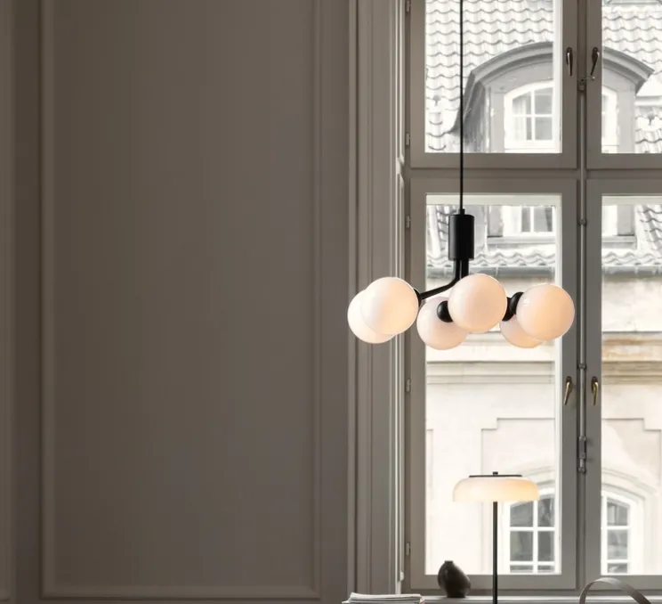 Découvrez la splendide suspension scandinave Apiales 6 conçue par la designer Sofie Refer et éditée par la marque danoise Nuura.