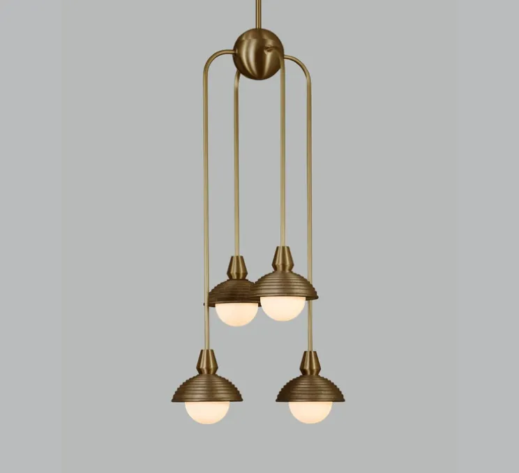 Créée par Robbie Llewellyn et Adam Yeats pour la marque Bert Franck, la suspension à 4 globes s’impose comme une pièce maîtresse de la collection Eos.