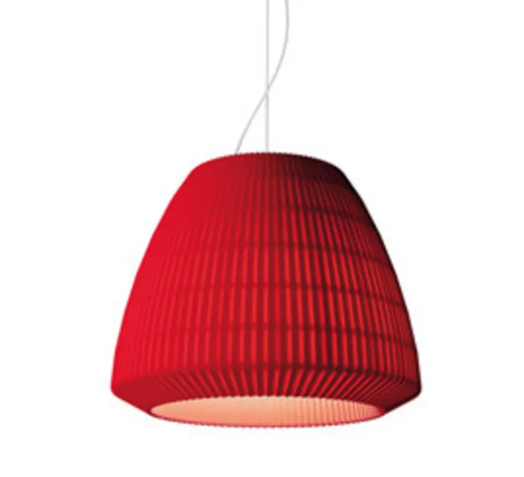La suspension Bell réinterprète de façon originale la forme classique du dôme, tout en offrant une légèreté visuelle grâce à son tissu rouge et ses lignes douces. Ce luminaire s’intègre parfaitement dans des styles variés, notamment Japandi, alliant minimalisme scandinave et raffinement japonais. Bell apporte une touche chaleureuse tout en réduisant le bruit ambiant, en faisant un choix judicieux pour les salons, salles de réunion ou espaces professionnels. Son câble de 2,8 mètres permet une installation personnalisée selon la hauteur de plafond.