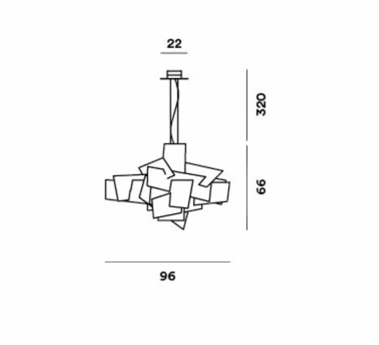 Le luminaire Big Bang se caractérise par ses intersections non-régulières et fortuites, il crée ainsi un volume imposant et une dynamique caractérielle. Les plans du luminaire s’échappent du noyau central ; donnant naissance à une explosion lumineuse.