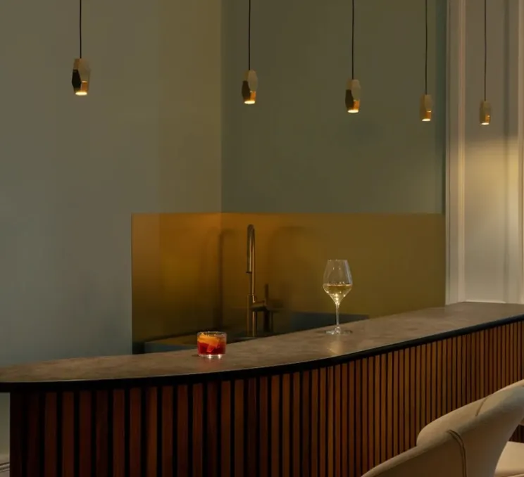 Combinaison entre l’abat-jour Quadra et la rosette mini noir, cette suspension est marquée par un design danois géométrique et nouveau. Le luminaire a une magnifique composition en laiton massif.