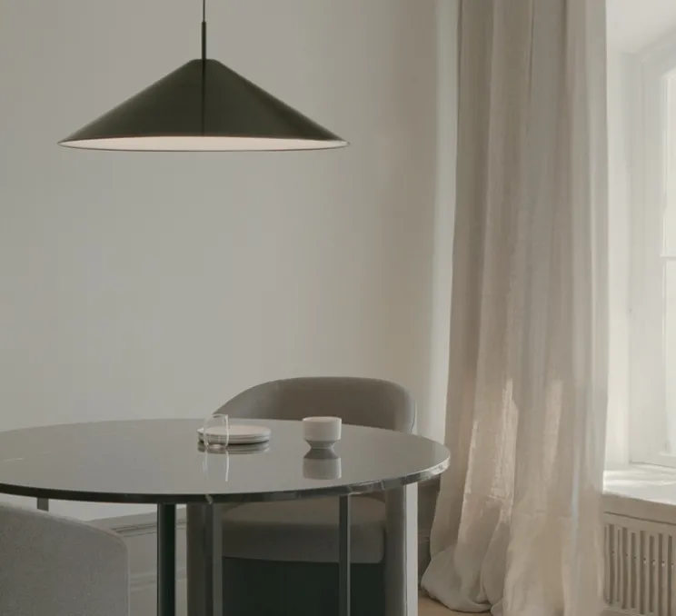 Au style scandinave, la suspension Brolly est fabriquée avec une attention particulière et incarne une esthétique intemporelle. Elle met en valeur la force des formes simples à travers un design conique et épuré. L’abat-jour noir, en aluminium, est proposé dans un diamètre de 70 cm et une hauteur de 29 cm, conférant une présence architecturale marquée. Le diffuseur concave adoucit la lumière émise, créant une ambiance lumineuse agréable sans éblouir.
