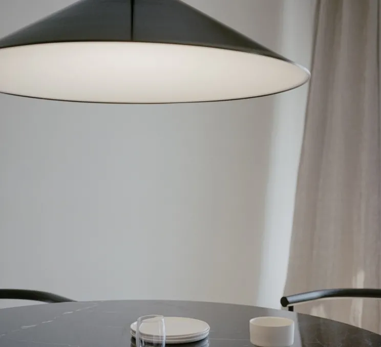 Dotée d’un câble de 3,5 mètres de longueur en noir, la suspension Brolly offre un éclairage direct et dimmable, permettant de moduler l’intensité lumineuse selon les besoins.