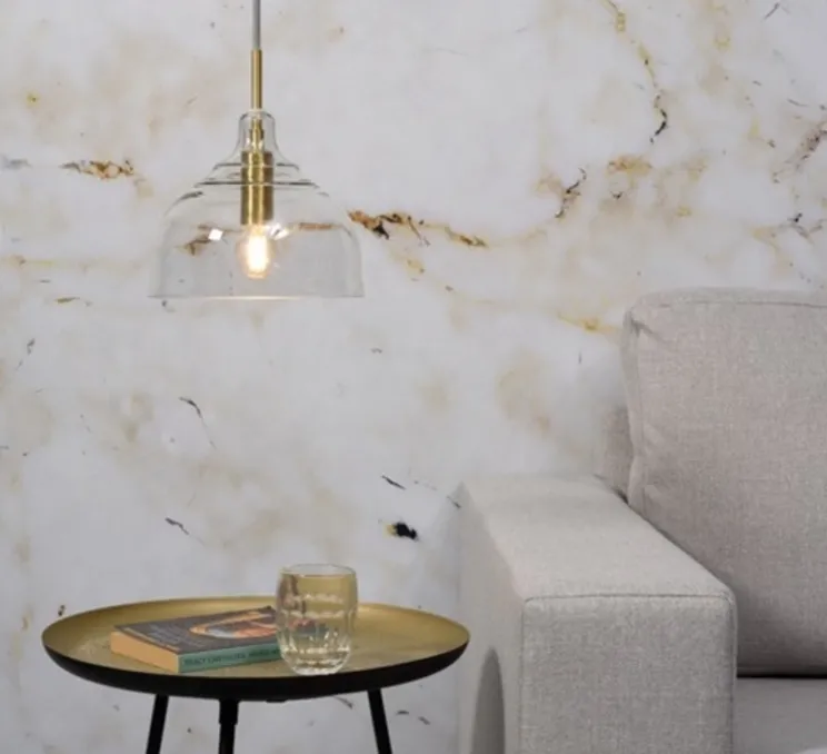 Avec son design naturel et élégant, l’abat-jour en verre est une invitation au romantisme et à la délicatesse. L’abat-jour du luminaire repose sur une élégante structure en métal doré.