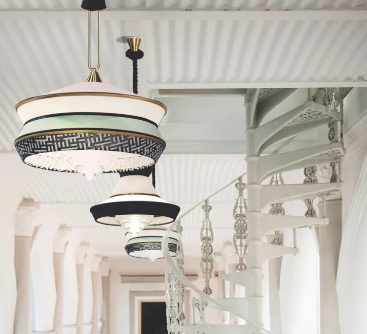 Le studio de design Servemuto met en avant à la fois la culture sud-américaine et la culture des tropiques en dessinant des suspensions inédites inspirées des luminaires des années 1940.