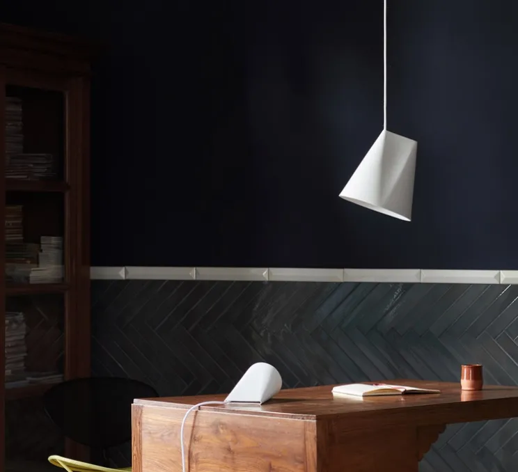 La suspension en céramique repose librement le long du cordon, vous permettant ainsi de faire pivoter l’abat-jour dans n’importe quelle direction pour l’adapter à votre espace. Vous pouvez le maintenir en position droite ou encore faire contrepoids avec un autre objet. Après avoir subi une cuisson à plus de 1 100 degrés, la lampe est délibérément laissée sans émail, créant ainsi une surface mate et finement texturée. La forme, la taille et la couleur de chaque lampe varient légèrement, conférant à chaque exemplaire une singularité propre.