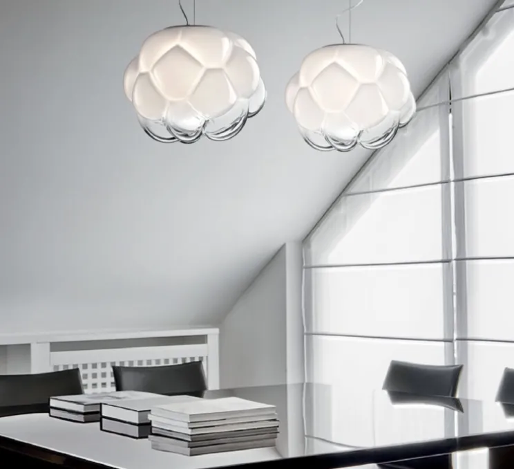 La suspension Cloudy est designée par le designer français Mathieu Lehanneur pour la maison italienne Fabbian, c’est un luminaire au style qui surprend par un côté originale tout en simplicité.