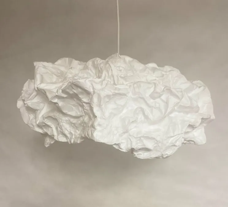 Inspirée par la douceur des nuages et leurs formes organiques, ce luminaire apporte une touche de légèreté à votre intérieur. Confectionnée à partir de Tyvek, un matériau qui allie l’aspect délicat du papier à une incroyable résistance aux déchirures et aux UV, Cloudy diffuse une lumière douce et chaleureuse. Avec son design vaporeux et ses plis délicatement façonnés, ce luminaire poétique « vous garde la tête dans les nuages » comme l’explique sa créatrice.