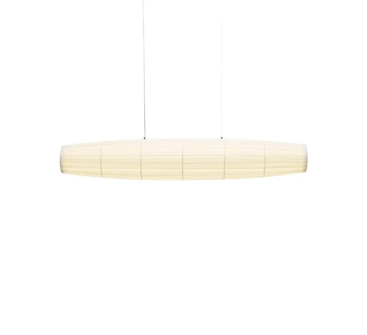 La suspension mesure 130 cm de longueur et 22 cm de hauteur. La source lumineuse 2700K, 6600lm est fournie.