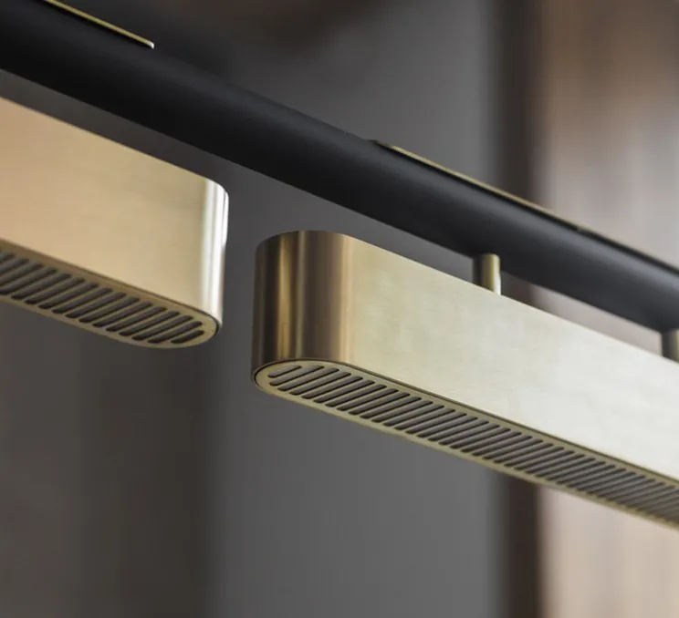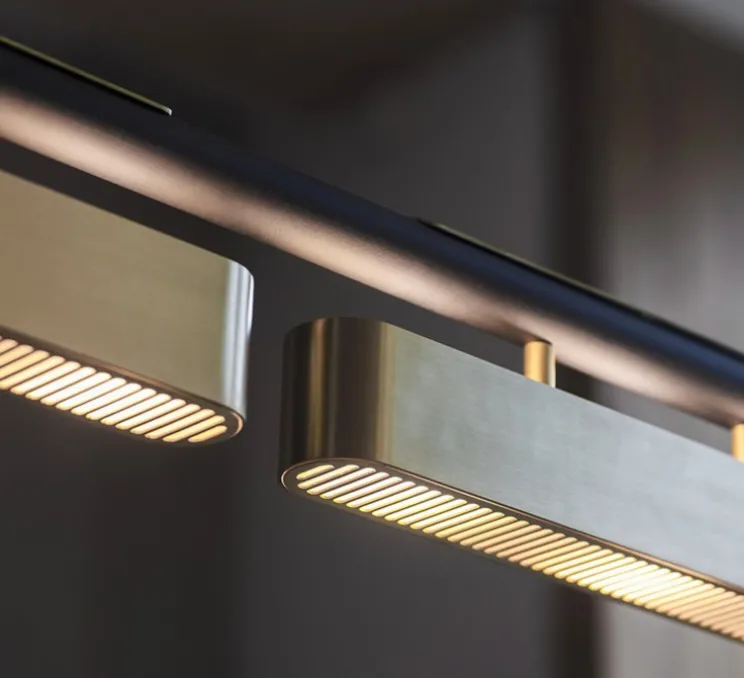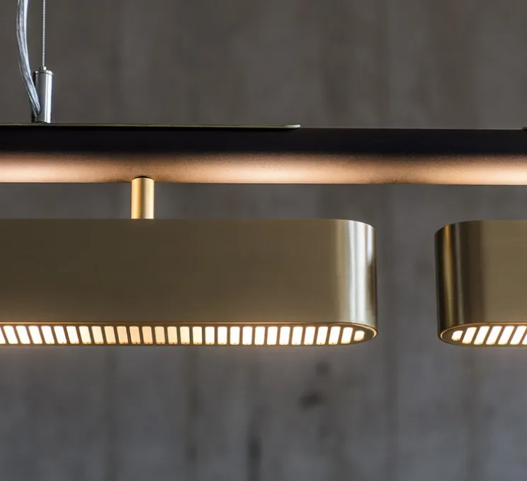 Fabriquée à partir de laiton usiné, une grille à fentes élégante se trouve au sommet d’un diffuseur opale dans le modèle Colt.