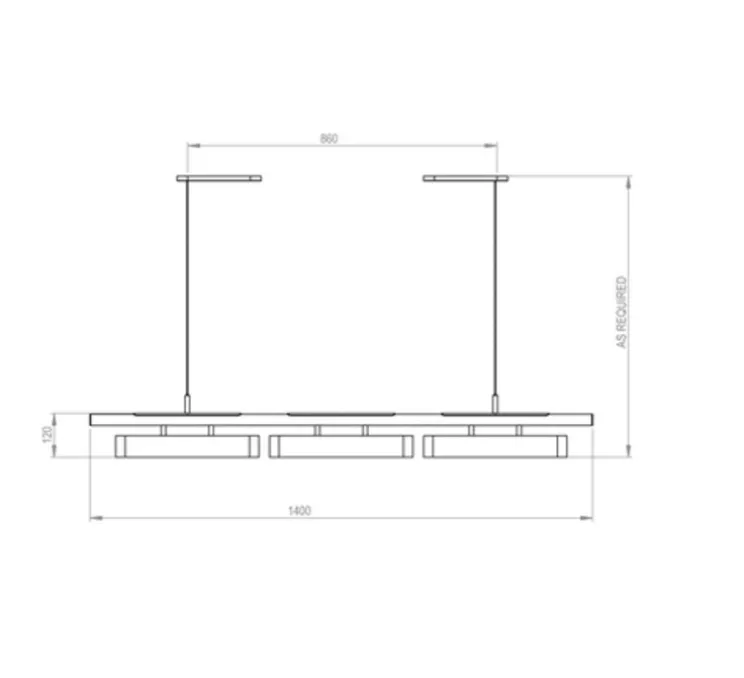 La suspension Colt Triple mesure 12cm de hauteur pour 140cm de longueur.