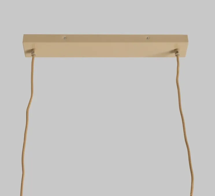 L’acier beige souligne la finesse de la composition, tandis que les globes apportent une touche organique et lumineuse. Le câble gainé de corde de 1,75 m renforce son allure naturelle. Installée au-dessus d’une table à manger ou dans un salon, la suspension crée un point focal décoratif et diffuse une lumière douce qui valorise l’espace.