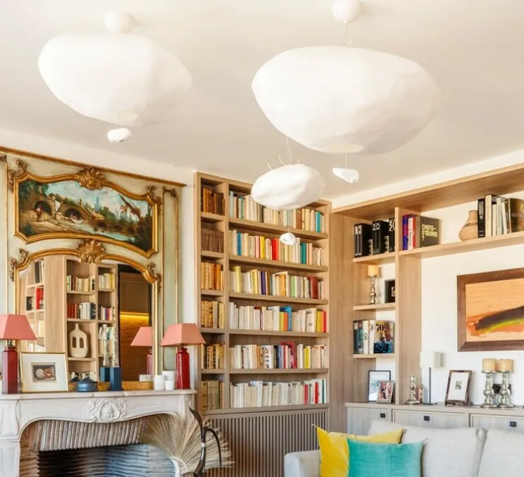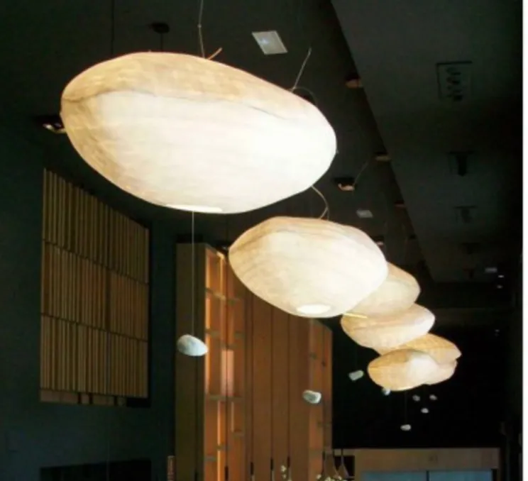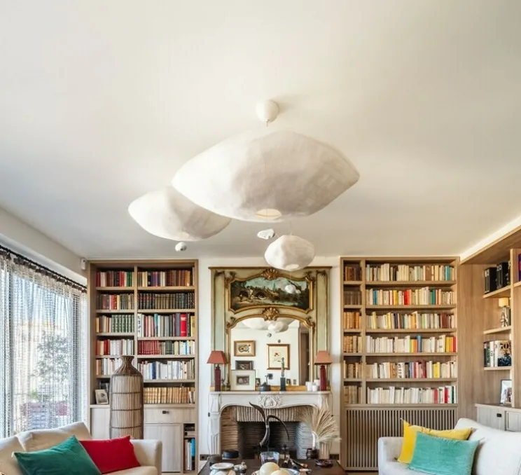 La matière noble du papier japonais offre une douceur extraordinaire à l’atmosphère de votre pièce. Dans un salon, une entrée, une chambre, la suspension Cumulus ne passera pas inaperçu.